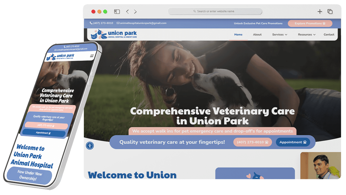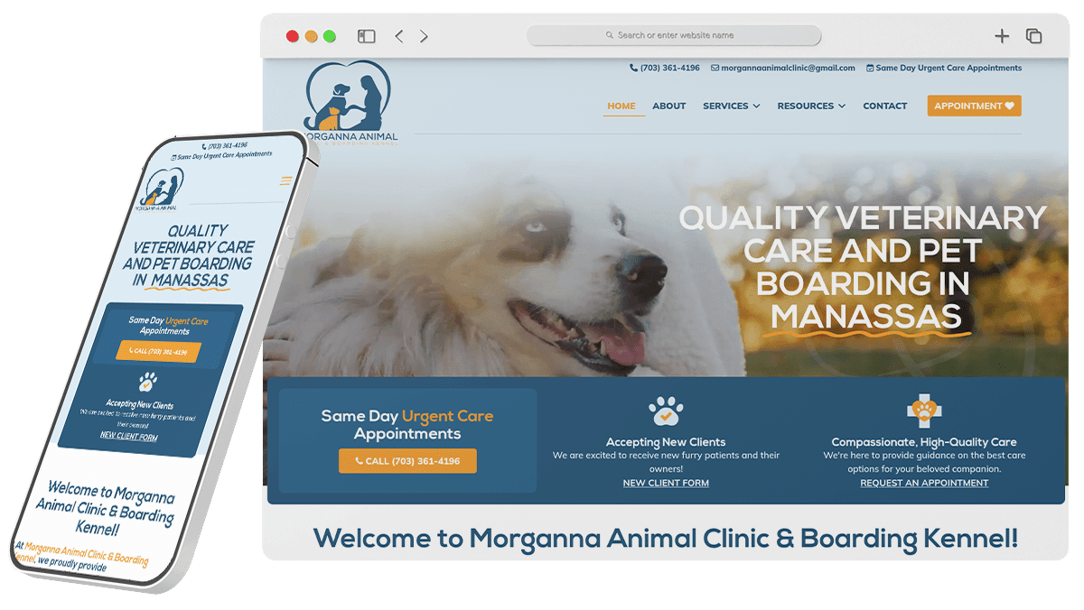 A sleek, responsive website showcasing their services and friendly care.